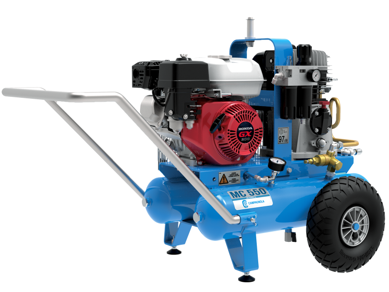 Επαγγελματικός και εύκολος στη μεταφορά χάρη στις μικρές διαστάσεις του. Ο ιδανικός αεροσυμπιεστής για όσους θέλουν να λειτουργήσουν ταυτόχρονα περισσότερα εργαλεία κλαδέματος και συλλογής. Με βενζινοκινητήρα GX 200 Honda 5.5hp