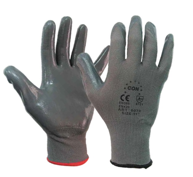 Γάντια από πλέξη Polyester εμβαπτισμένα με Nitrile. Aνθεκτικά στη τριβή, εύκαμπτα με αδιαβροχοποιημένη παλάμη.