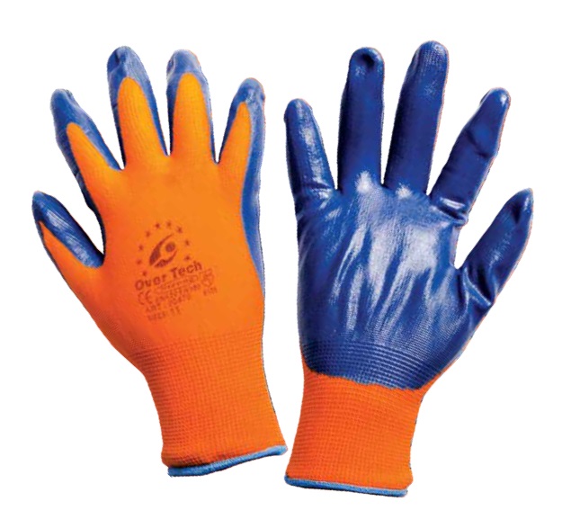 Γάντια από πλέξη Polyester, εμβαπτισμένα με Nitrile. Aνθεκτικά στη τριβή, εύκαμπτα με αδιαβροχοποιημένη