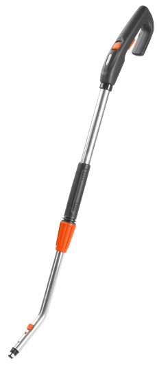 Για την κοπή μπορντούρας γκαζόν και φυτών κάλυψης εδάφους από όρθια στάση, όλα τα επαναφορτιζόμενα ψαλίδια της GARDENA μπορούν να εξοπλιστούν εύκολα με το τηλεσκοπικό κοντάρι της GARDENA. Η χρήση της τηλεσκοπικής περιστρεφόμενης λαβής προσφέρει επίσης μεγαλύτερη εμβέλεια για ψηλούς φράχτες ή διαμόρφωση πλευρικών περιγραμμάτων. Χάρη στη σύνδεση χωρίς καλώδιο, η συναρμολόγηση είναι ιδιαίτερα εύκολη και γρήγορη. Η εργονομική λαβή προσαρμόζεται τέλεια στο χέρι κατά την εργασία και ο χειρισμός της συσκευής μπορεί να γίνει από επάνω. Για ευχάριστη εργασία, το τηλεσκοπικό κοντάρι μπορεί να περιστραφεί και στις δύο πλευρές σε βήματα των 45° και είναι πλήρως ρυθμιζόμενο σε ύψος από 85 έως 120 cm. για βέλτιστη προσαρμογή στο ύψος του χρήστη και στην τρέχουσα εργασία. Η επιλογή δεύτερης χειρολαβής είναι ιδανική για χρήση με τα επαναφορτιζόμενα ψαλίδια γκαζόν, όταν απαιτείται πιο ακριβής καθοδήγηση.