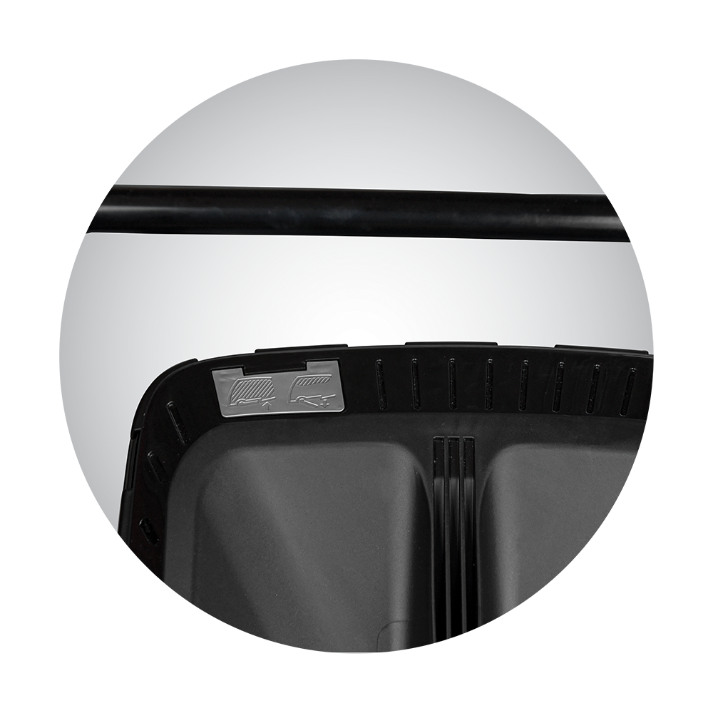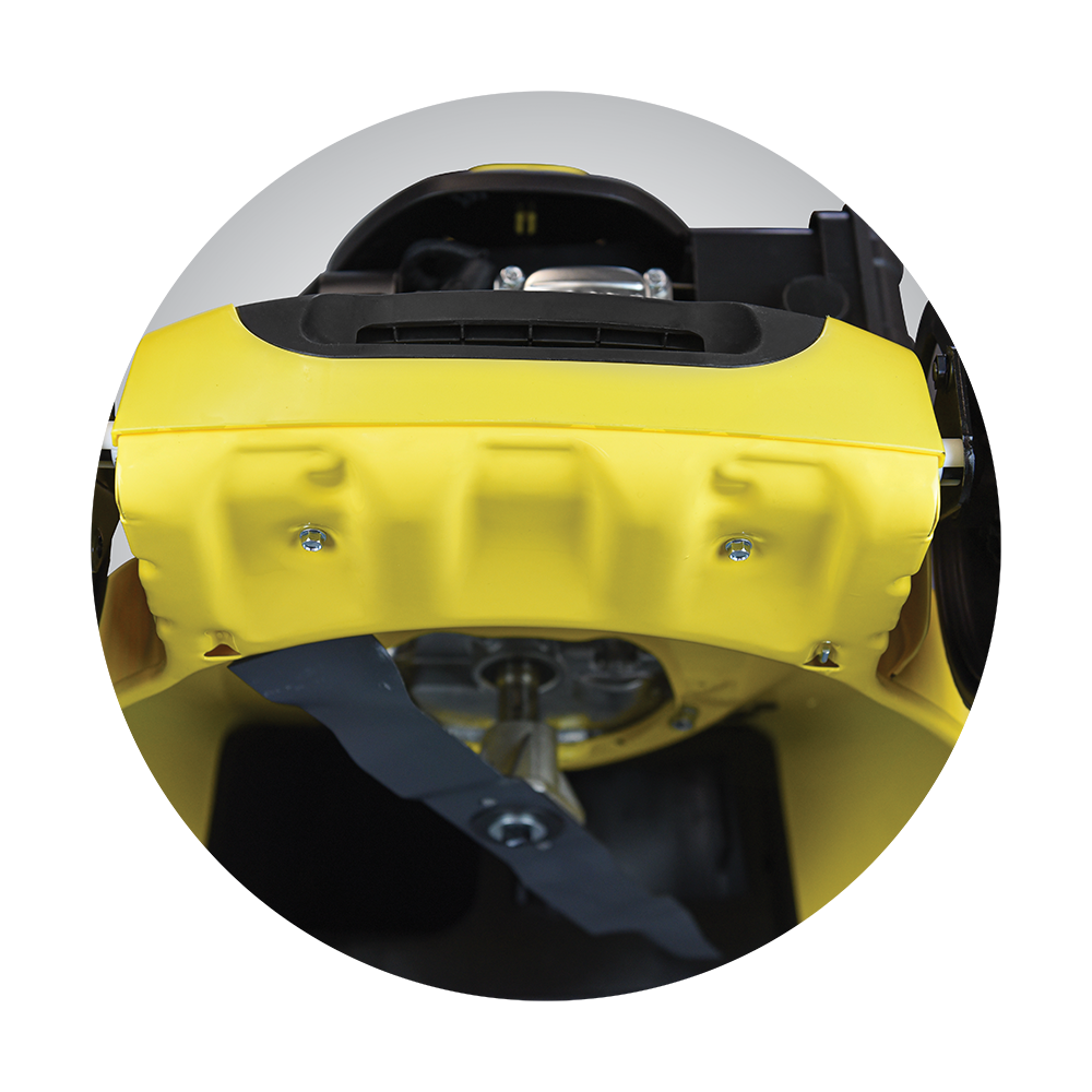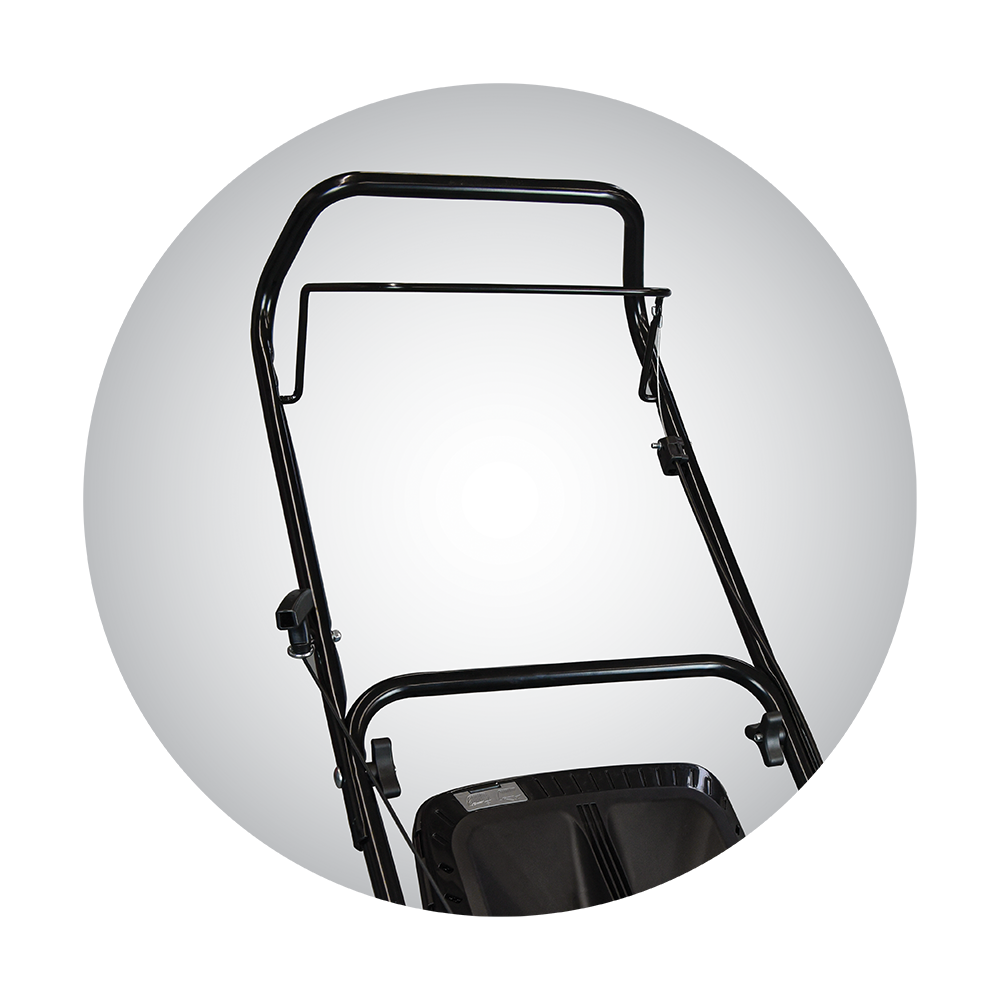 Στιβαρό ατσάλινο πλαίσιο κοπής, μπροστινό κάλυμμα με λαβή Κεντρική ρύθμιση ύψους κοπής 6 θέσεων